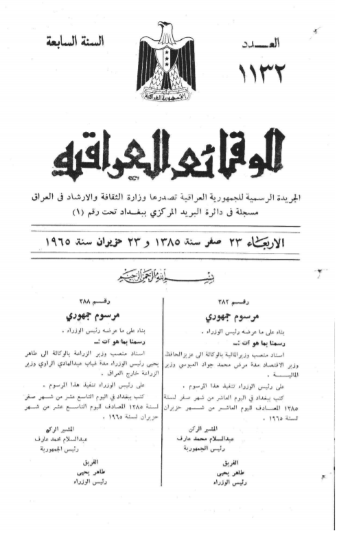 ترتيب الوقائع العراقية حسب السنة