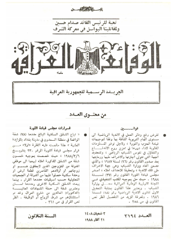 ترتيب الوقائع العراقية حسب السنة